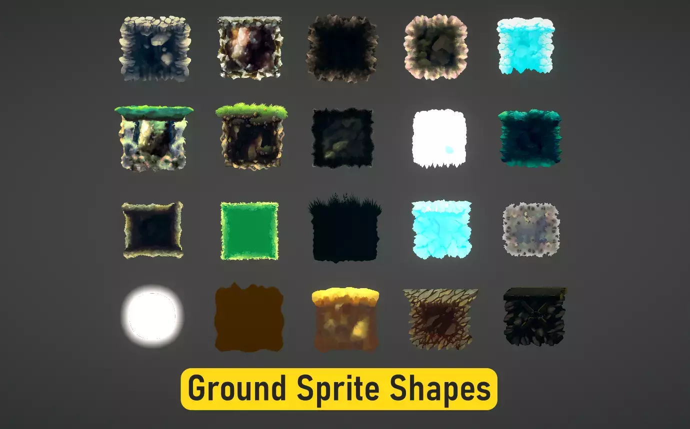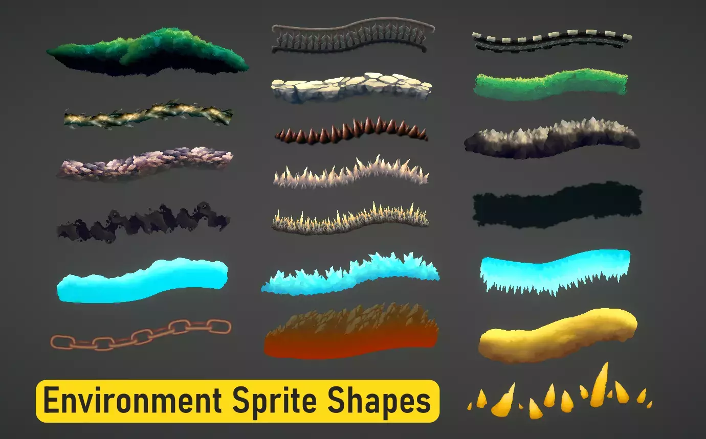 Создавайте уникальные пейзажи с помощью спрайтовых фигур и нарисованных от руки спрайтов, идеально подходящих для 2d-игр, таких как сайд-скроллеры или платформеры.