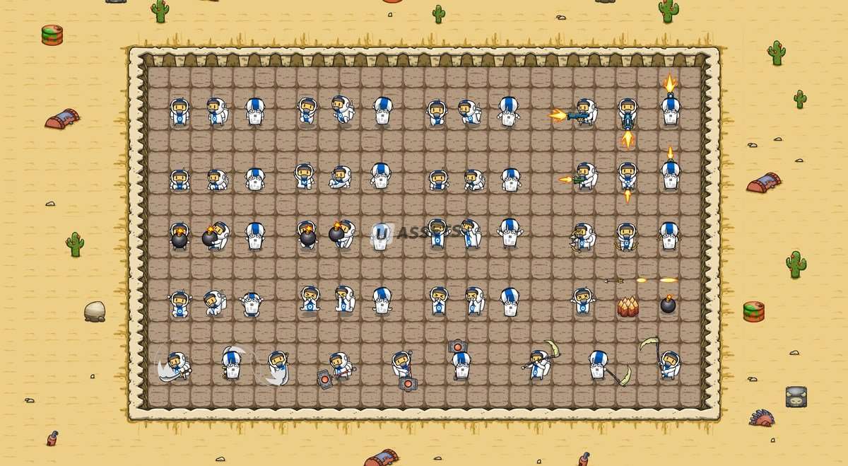 Персонажи предназначены для работы в четырех направлениях. Анимации слева и справа — один и тот же спрайт. Чтобы получить правильную версию, ее нужно отзеркалить. Это очень распространенная практика, но она может привести к ошибкам мелких деталей (например, смена повязки на глазу).