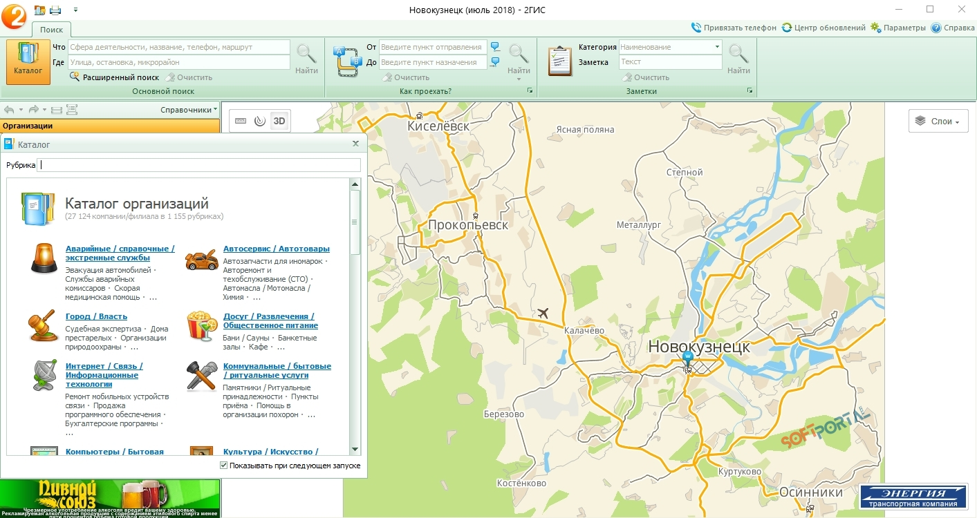 2ГИС (ДубльГис) Бесплатная программа для компьютера на базе windows 7/8/10, содержит подробный справочник порядка двух миллионов организаций и карты более 270 городов России.