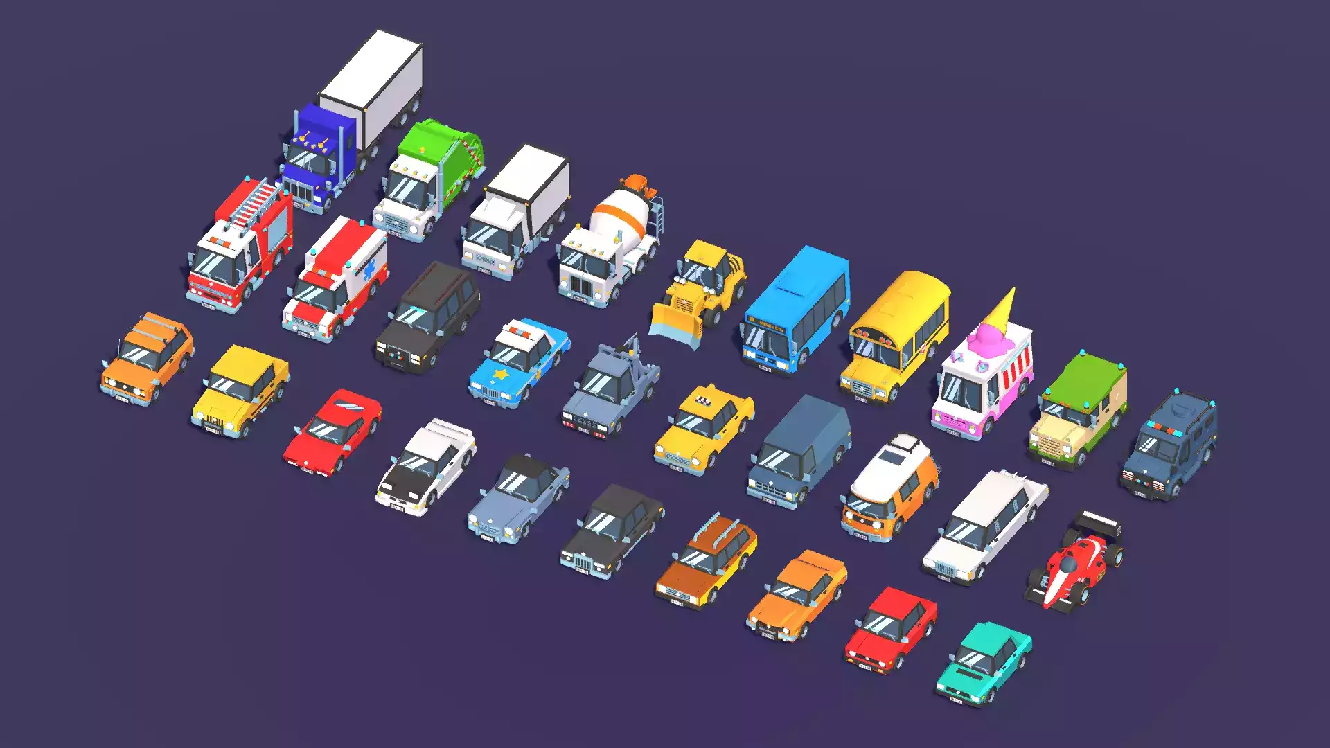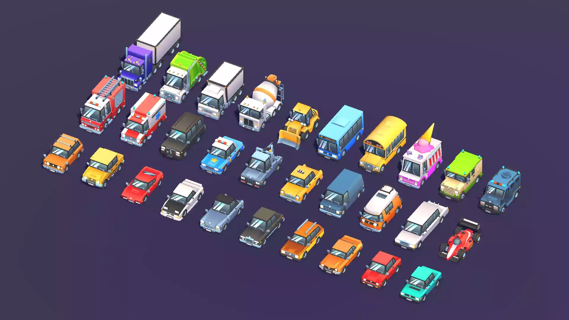 Набор из 35 мультяшных машинок для ваших игр. Идеально подходит для мобильных игр.