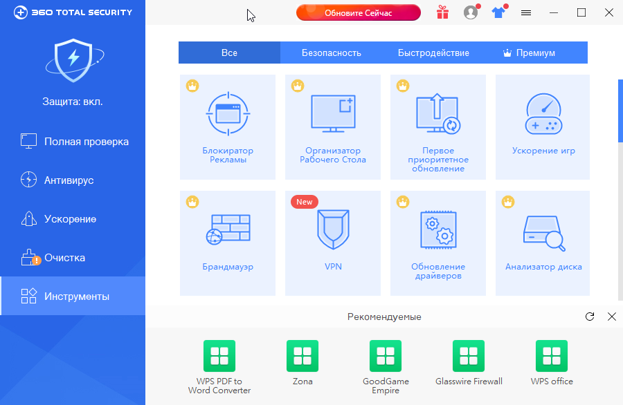 Кроме основных задач по защите компьютера, программа включает такие инструменты как оптимизация операционной системы, очистка жесткого диска от мусора, брандмауэр, и многие другие полезные вещи.