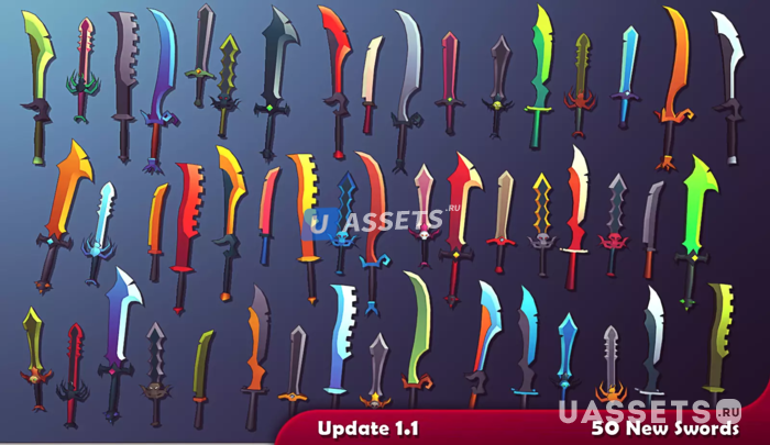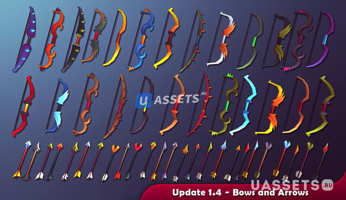 1Ч/2Ч Мечи, 1Ч / 2Ч Топоры, Щиты, Жезлы, Шары, Кинжалы, Метательные Ножи, Метательные Топоры, Метательные Звезды, Луки и Стрелы (включая анимацию стрельбы).