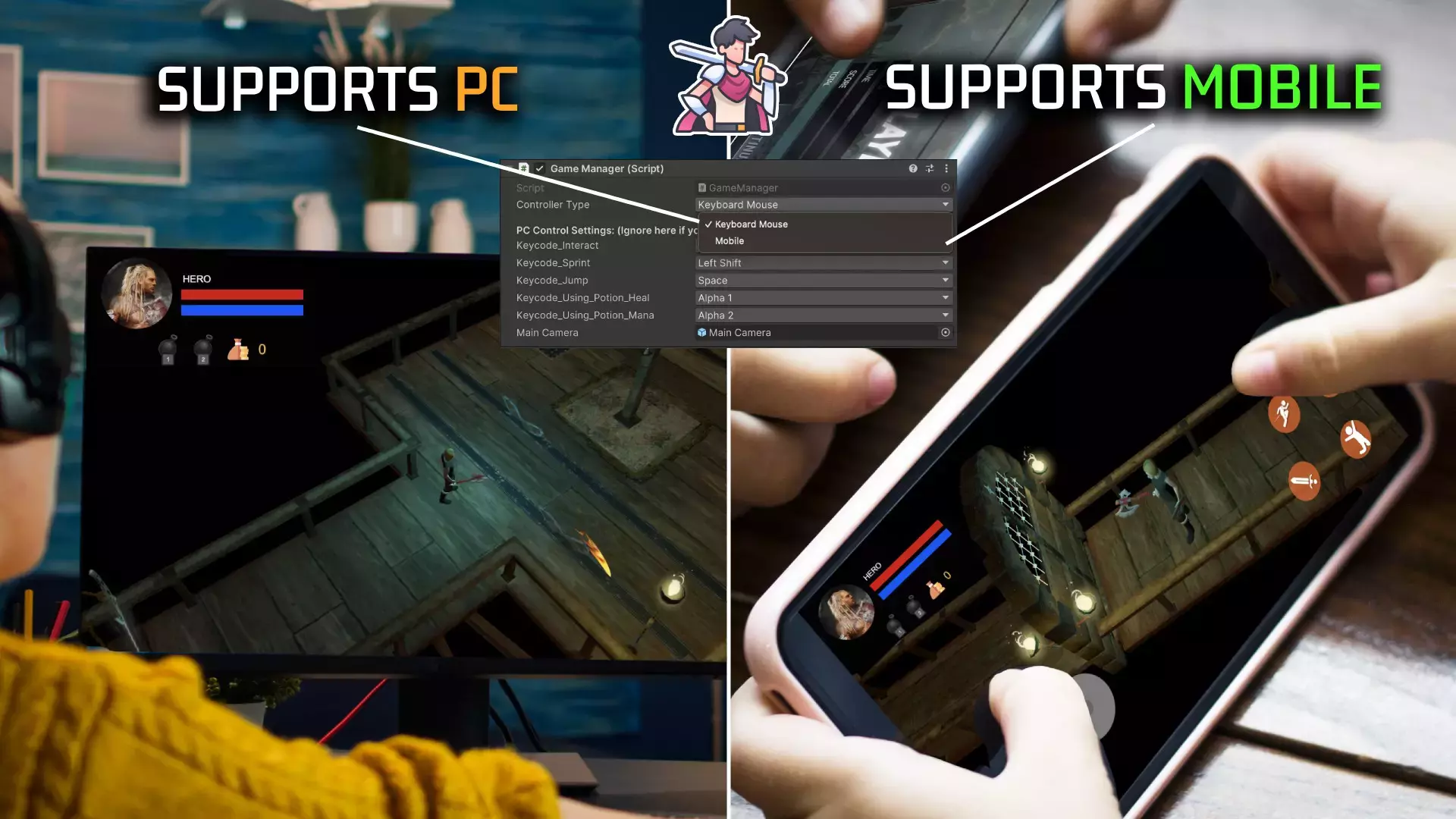 Вы можете легко создать свою собственную игру в стиле Roguelike или RPG как для мобильных устройств, так и для ПК, не зная языка программирования. Все префабы и модули готовы к использованию. Все сетки оптимизированы и добавлены анимации, частицы.