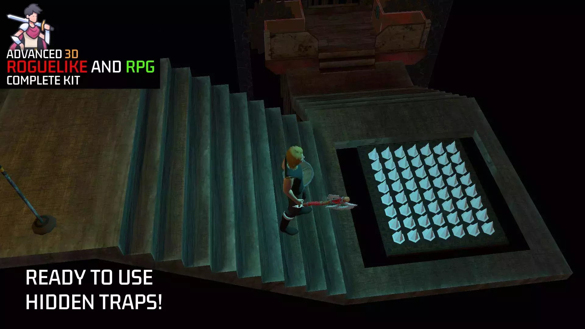 Готов к настройке и публикации набора для 3D-игр в стиле Roguelike и RPG. Вражеский искусственный интеллект, реквизит для подземелий, зелья, сундуки, головоломки, ловушки, звуковые эффекты, камера с подсказками и многое другое. Поддерживаются как мобильные устройства, так и ПК!