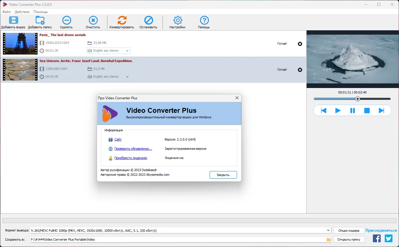 Abyssmedia Video Converter Plus 2.3.0.0 (x64) RePack (& Portable) by Dodakaedr — это мощный и быстрый инструмент для конвертации видео и аудио файлов. Программа поддерживает широкий спектр форматов, позволяя легко подготавливать медиафайлы для воспроизведения и обмена на любых устройствах и платформах. С Abyssmedia Video Converter Plus вам не нужно беспокоиться о совместимости исходных форматов с вашей системой.