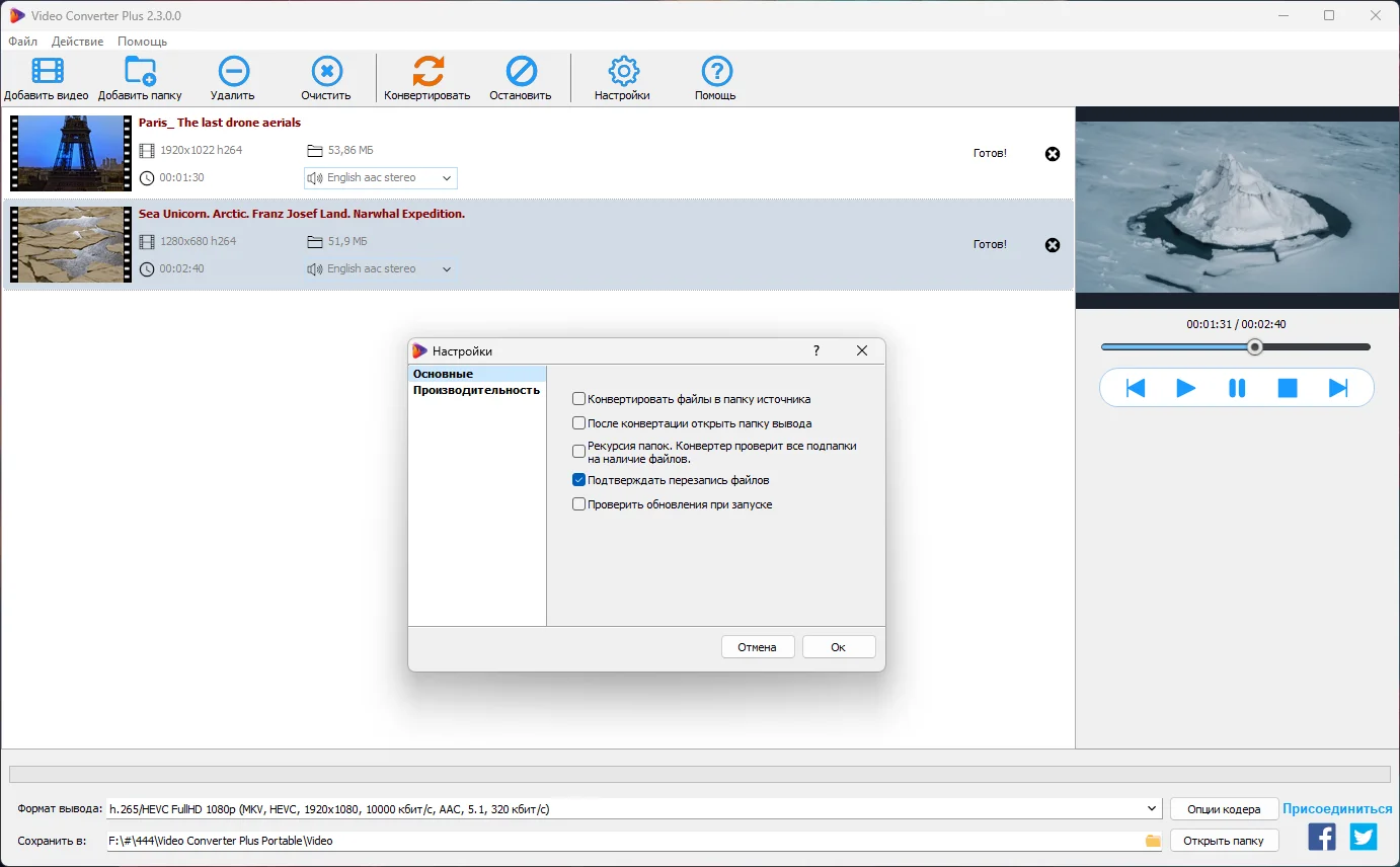 - Гибкие настройки и пресеты: Конвертер предлагает различные кодеки для одного формата в зависимости от выбранных настроек, что позволяет найти оптимальный баланс между качеством и скоростью обработки. Вы можете использовать готовые оптимизированные пресеты для создания видео в 1080p или 4K, а также легко адаптировать их параметры под свои задачи.