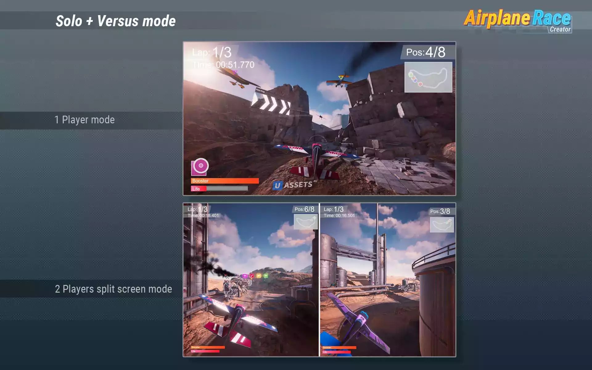 Airplane Race Creator — это полный набор для создания гонок с самолетами, космическими кораблями, летающими верблюдами или чем угодно. Код не требуется, и все полностью настраивается.