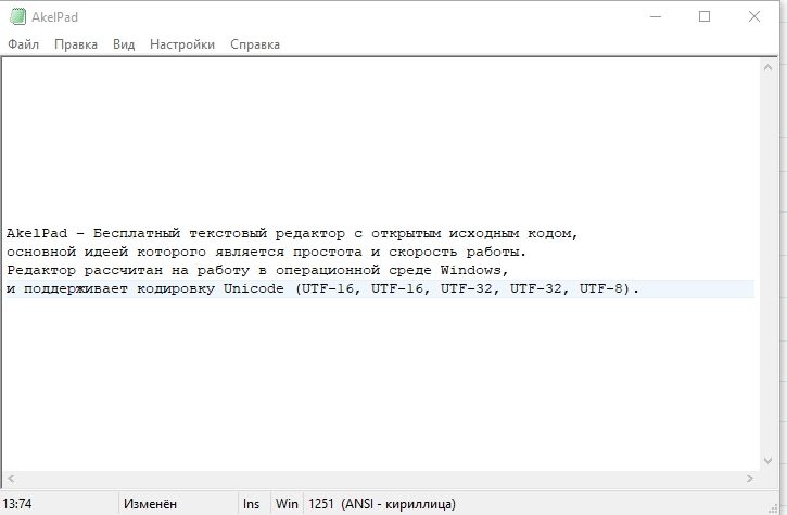 AkelPad – Бесплатный текстовый редактор с открытым исходным кодом, основной идеей которого является простота и скорость работы. Редактор рассчитан на работу в операционной среде Windows, и поддерживает кодировку Unicode (UTF-16, UTF-16, UTF-32, UTF-32, UTF-8). Кроме того, AkelPad поддерживает установку дополнительных модулей в виде динамических библиотек для расширения возможностей, например, подсветка синтаксиса, запуск скриптов, макросы, авто дополнение, сворачивание кода, и даже цветовые темы. Также вы легко сможете сменить язык редактора, например, на английский с помощью языковых файлов.