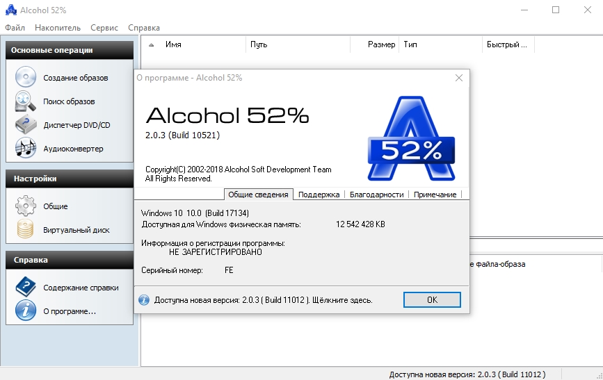 Alcohol 52% Free Edition – Создавайте образы дисков и виртуальные приводы с полностью бесплатной версией старейшего эмулятора CD/DVD приводов. От своей платной версии “Alcohol 120%” отличает отсутствием функций записи дисков из образа и меньшим числом виртуальных приводов, их тут максимум 6.