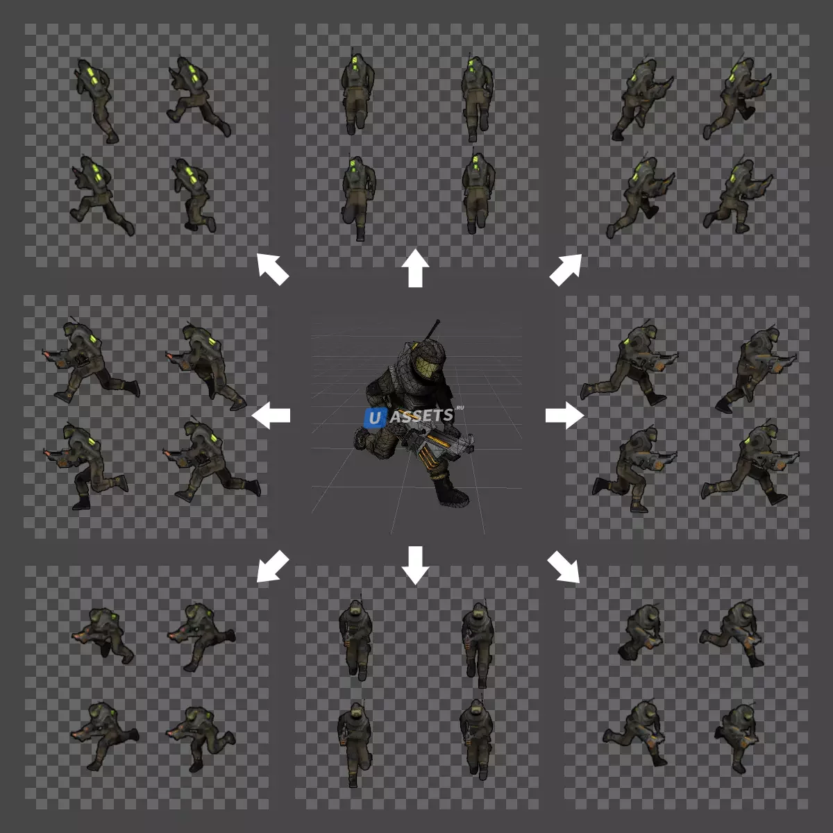 Вы можете фотографировать различные модели в различных направлениях. Выходные файлы представляют собой листы спрайтов и анимационные клипы, которые можно использовать для ваших 2D- или 2.5-D-игр.
