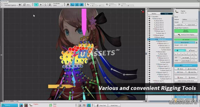 - Такелаж и анимация костей.