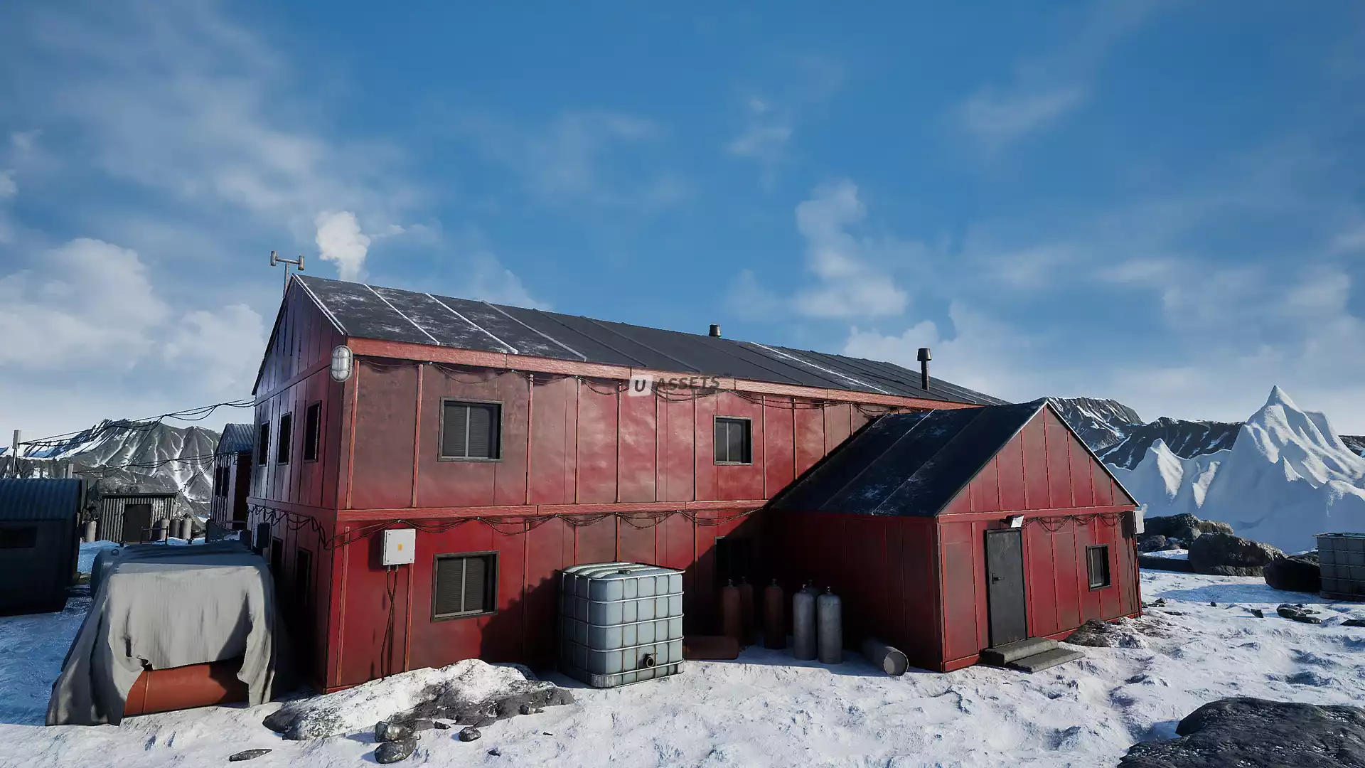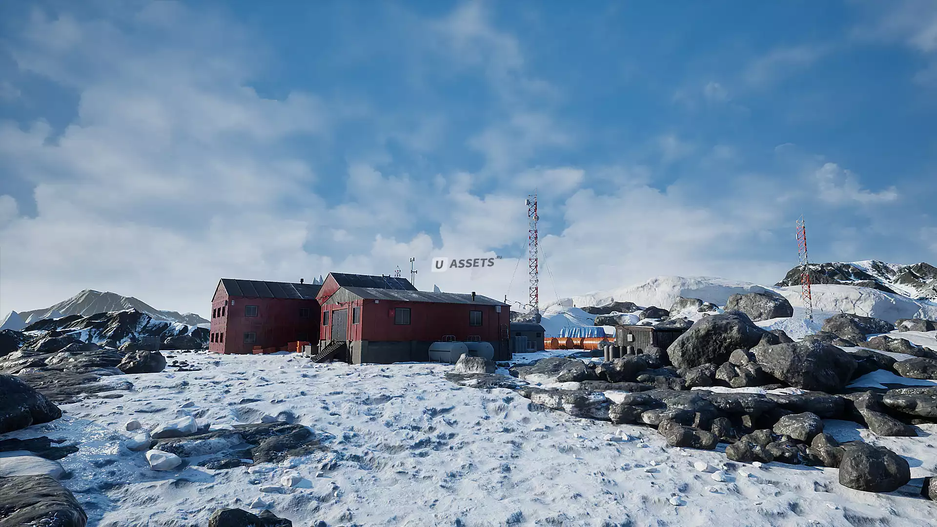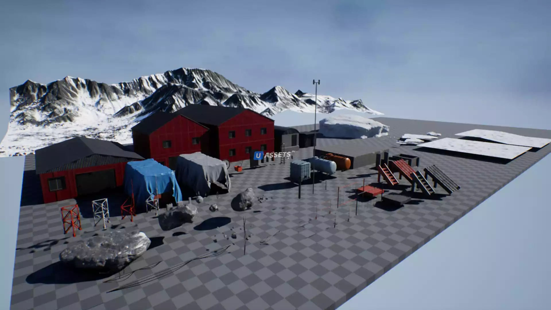 Окружение арктической станции. Этот проект поставляется с активами, которые помогут вам создать высококачественную среду для арктических или антарктических станций. Содержит здания, реквизит, ландшафт и водные материалы на демонстрационном уровне.