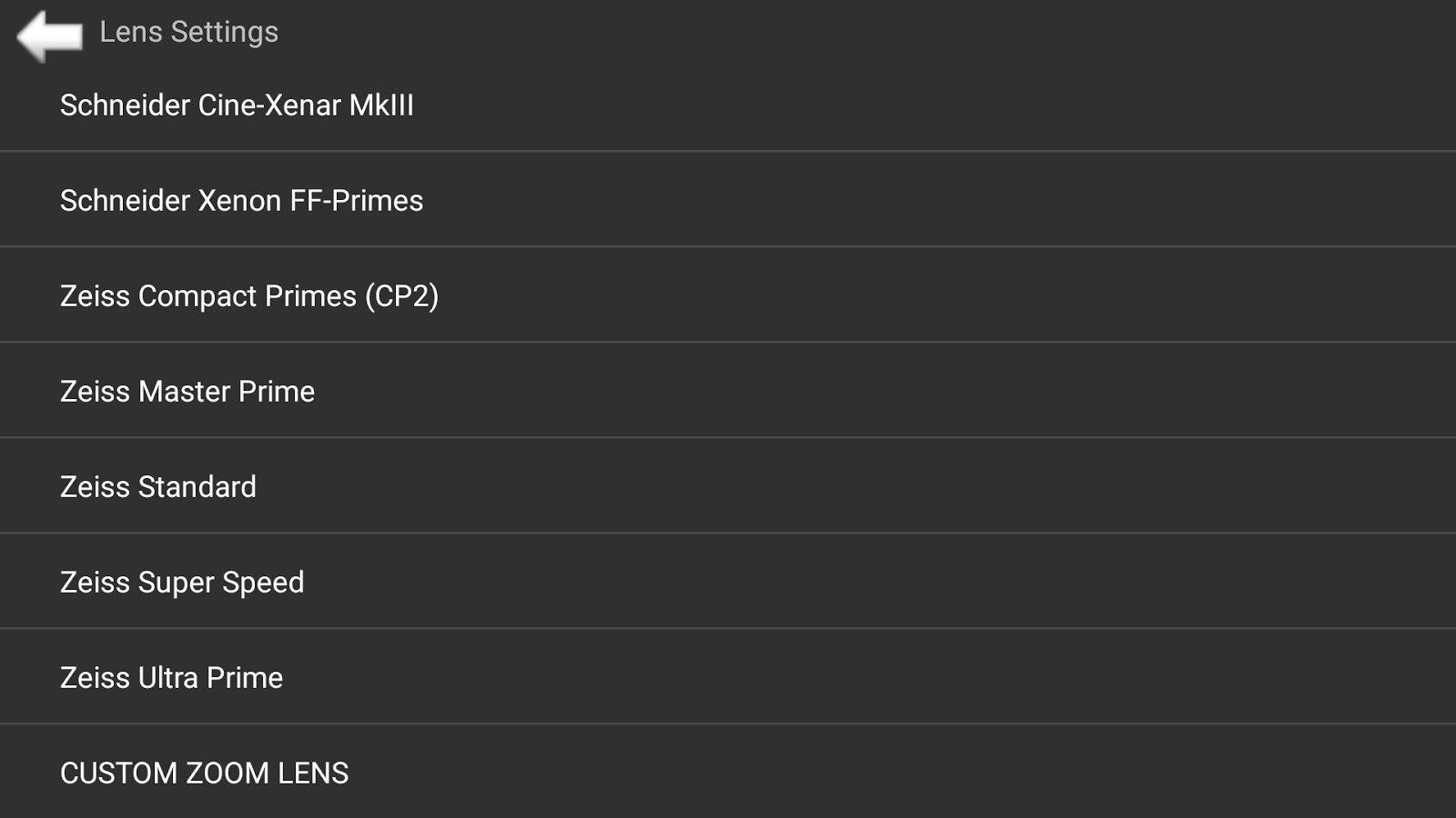 ARTEMIS DIRECTOR'S VIEWFINDER 2.0.7 включает в себя обширную встроенную библиотеку объективов, что позволяет точно моделировать картинку. Среди поддерживаемых наборов: