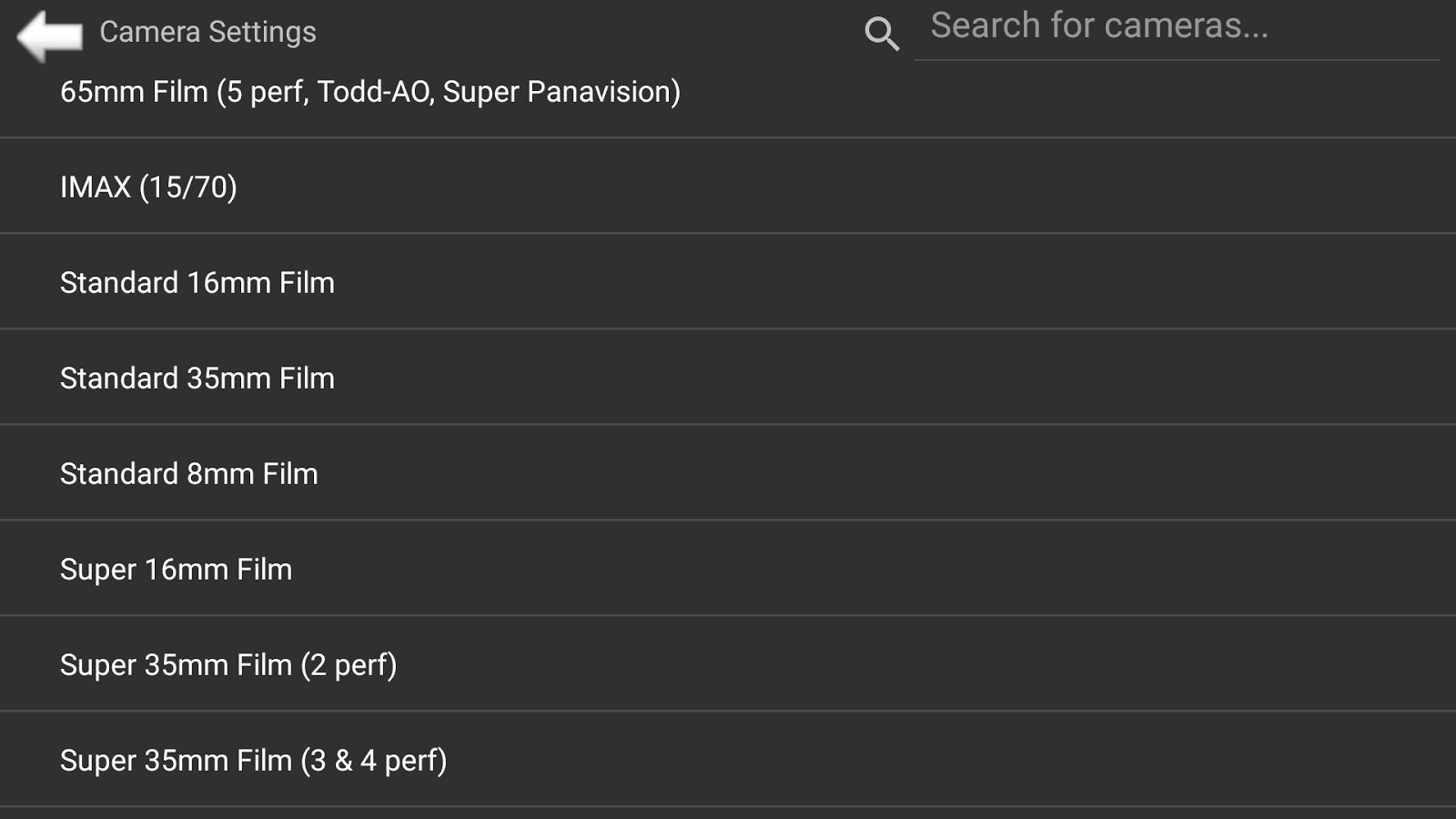 - 16mm Film: Standard, Super и 1.3 Anamorphic