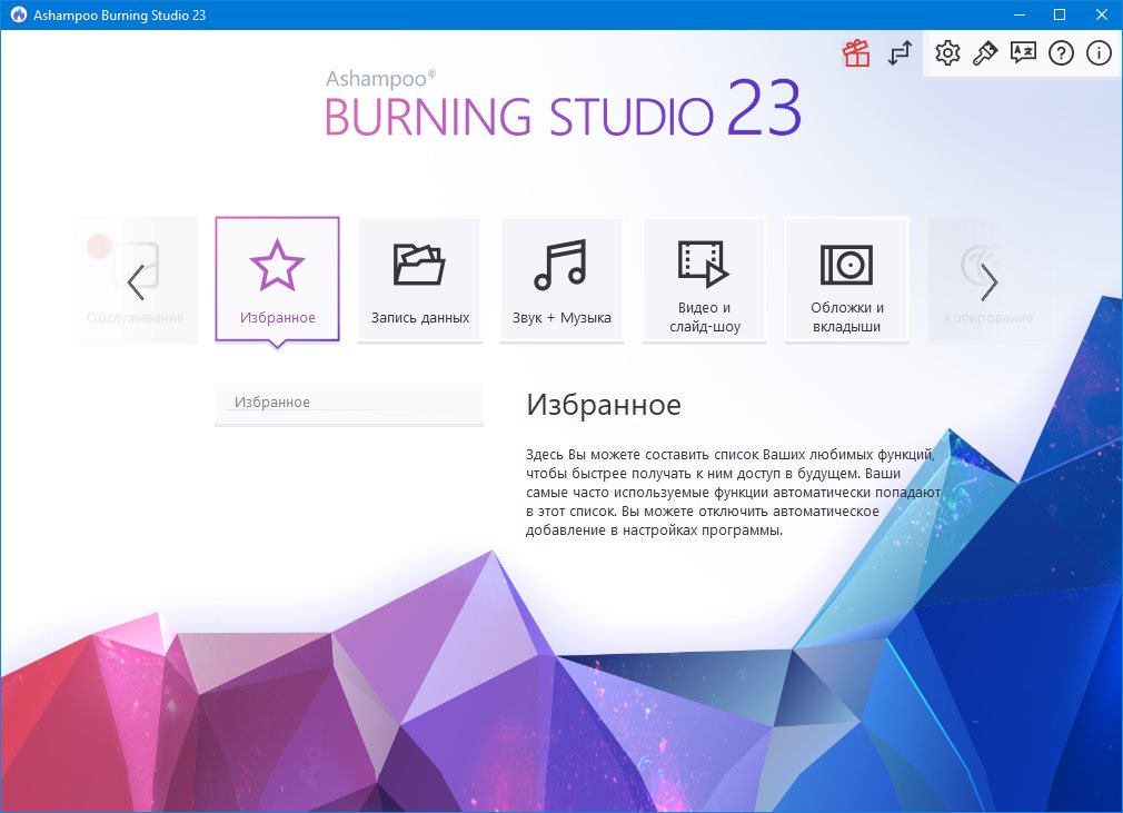 Ashampoo Burning Studio - Профессиональное программное обеспечение для записи CD / DVD / Blu-ray в режиме «все-в-одном» Ashampoo Burning Studio - это полный и мощный инструмент для лёгкой работы с носителями, который подходит как начинающим, так и продвинутым пользователям. Приложение дает возможность редактировать видео и создавать собственные диски DVD или Blu-ray. Приложение разработано для максимальной производительности за счет поддержки современных многоядерных процессоров.
