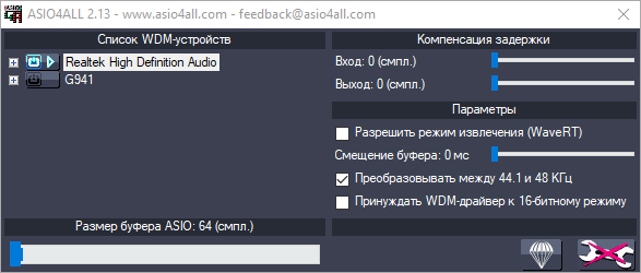 Основные особенности ASIO4ALL: