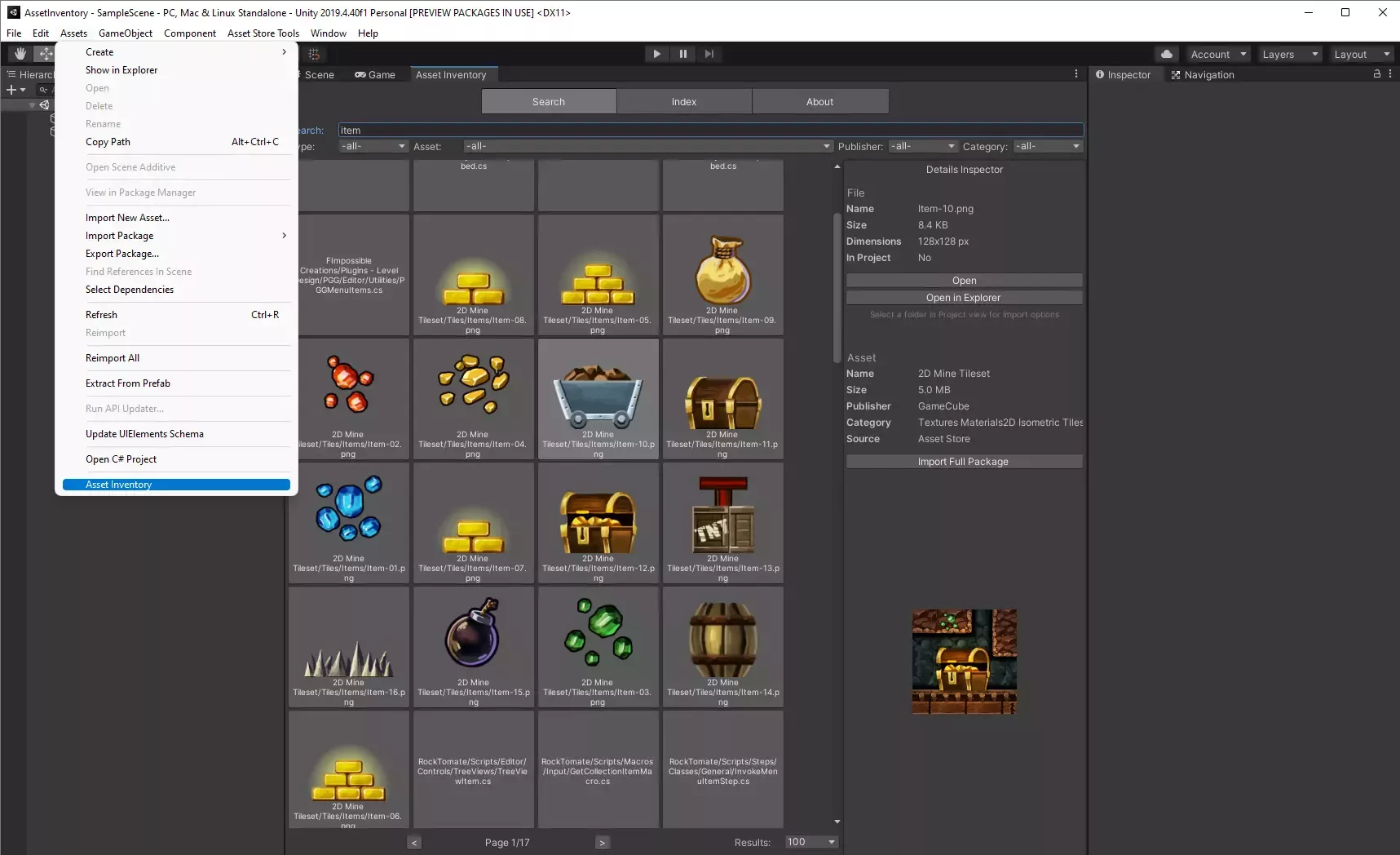 Избавьте себя от трудоемкой задачи поиска звукового файла, текстуры или модели, которую, как вы знаете, вы приобрели, но которая скрыта внутри одной из ваших многочисленных покупок в Asset Store. Инвентаризация активов предоставляет полный список всех принадлежащих вам активов, включая их содержимое.
