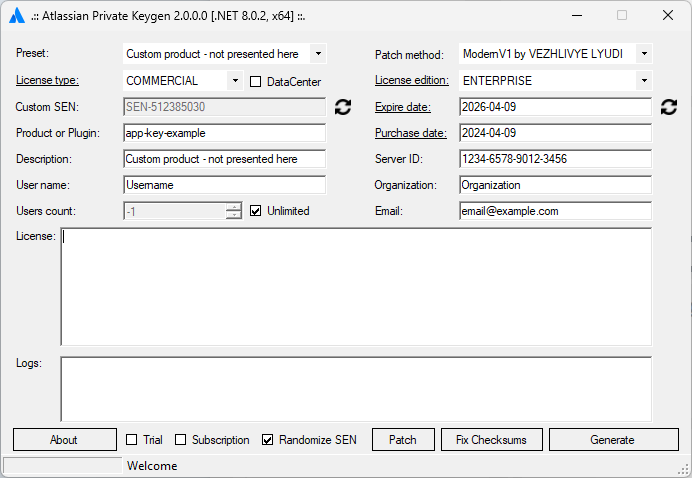 Поддерживаются старые версии Atlassian Stack. Предыдущий метод заключался в патчинге только одного файла atlassian-extras или obr\upm. Поддерживается новый метод с новыми версиями продуктов (патчинг файла atlassian-extras + key-manager). Патченные JAR-файлы протестированы с версиями Java8 и Java11. Возможно, будут работать с Java17. Совместимо с оригинальным генератором ключей DVT. (На данный момент - только для предыдущего метода и старых версий продуктов). Поддерживается множество плагинов, возможность применения для пользовательских.
