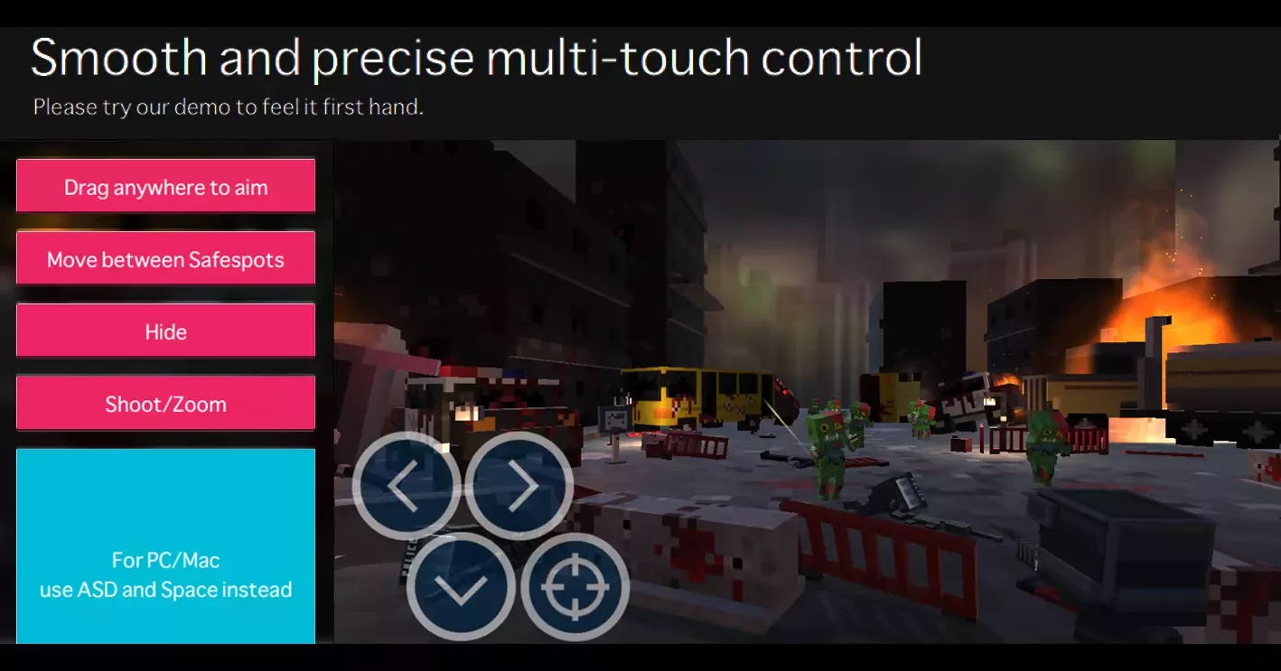- Плавное и точное управление мобильным шутером от 3-го лица