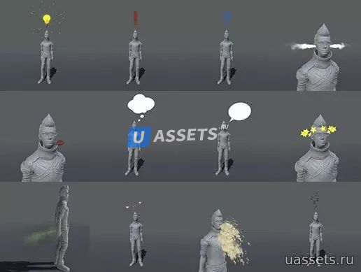 Включены 16 различных эмоций, каждая со звуковым эффектом плюс сценарий для их запуска. Полный список включает в себя: