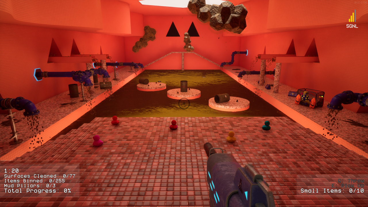 Помимо мытья поверхностей, геймплей включает поиск, сбор и утилизацию всех посторонних объектов в рабочей зоне; физика игры позволяет бросать предметы через комнаты, чтобы ускорить процесс. Во время уборки крайне важно сохранять бдительность и следить за надвигающимися опасностями. Угрозы проявляются в виде периодических и всё более агрессивных Вторжений, вынуждая членов экипажа уворачиваться от атак, не прерывая свою клининговую миссию.
