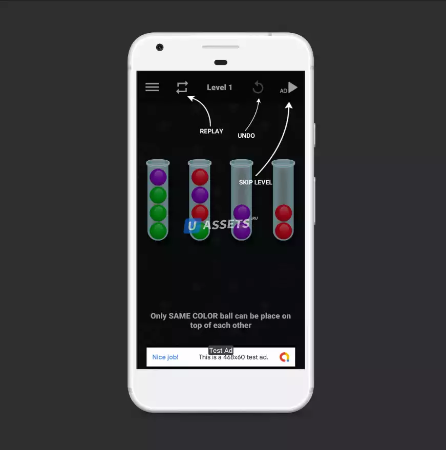 Ball Sort Puzzle - простая и захватывающая игра-головоломка. Используйте свой мозг и попытайтесь разгадать каждую головоломку. Эта игра поможет вам сократить время на создание подобной игры. Вам не нужно знать какой-либо язык программирования, чтобы настроить и использовать его. Очень легко заполнить его своими собственными задачами, внести изменения в пользовательский интерфейс, сменить свой Admod ID, начать набираться опыта в продвижении своей игры и зарабатывании денег. Мы будем поддерживать вас до тех пор, пока вы не почувствуете максимальное удовлетворение от этого актива.