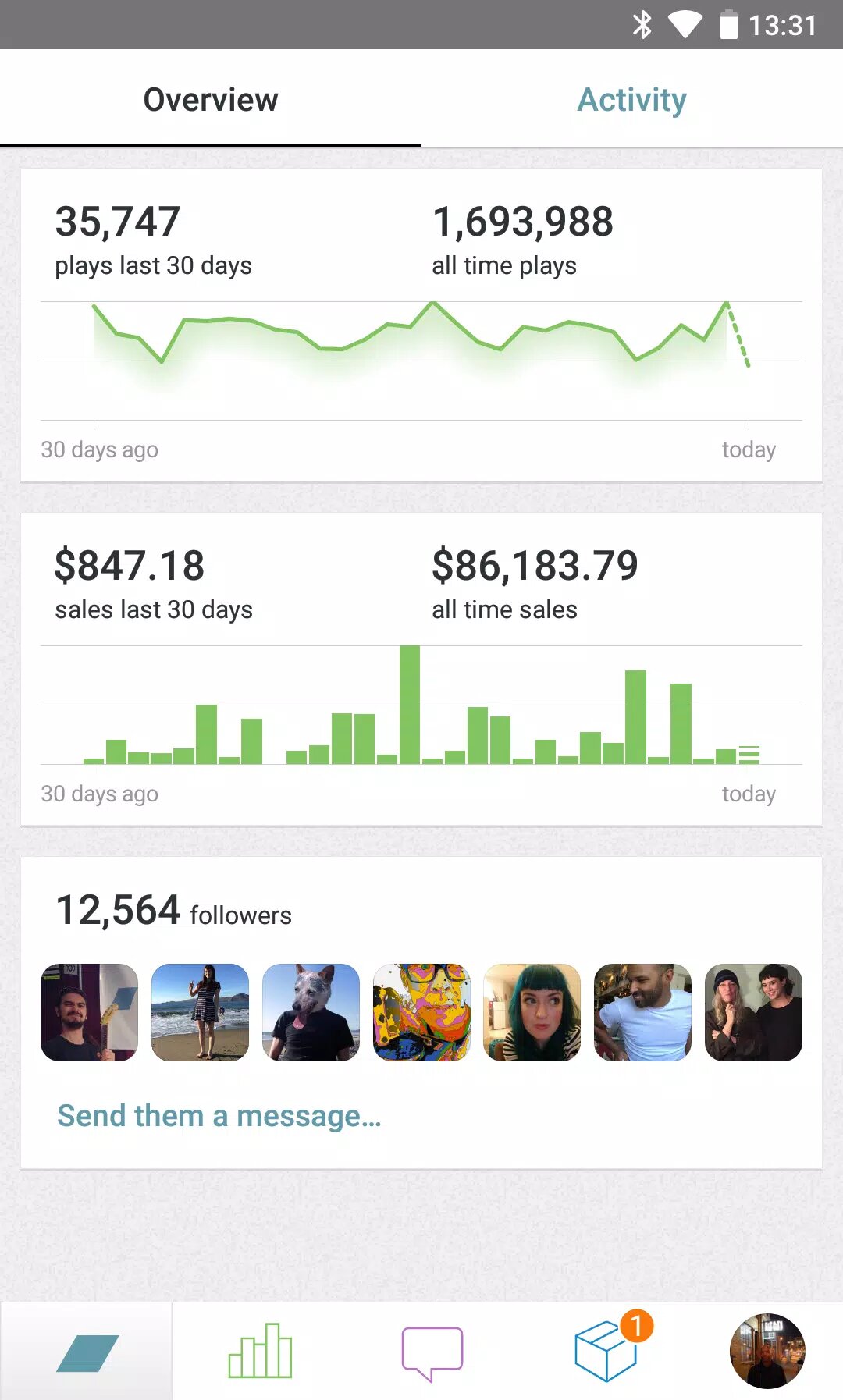 Основные функции BANDCAMP FOR ARTISTS 1.0.24 сосредоточены на аналитике и коммерции. Приложение предлагает мобильный доступ к статистике в реальном времени, включая данные о прослушиваниях, продажах и активности фанатов. Кроме того, оно является удобным инструментом для полного цикла управления мерчендайзом: от контроля заказов до организации их выполнения.