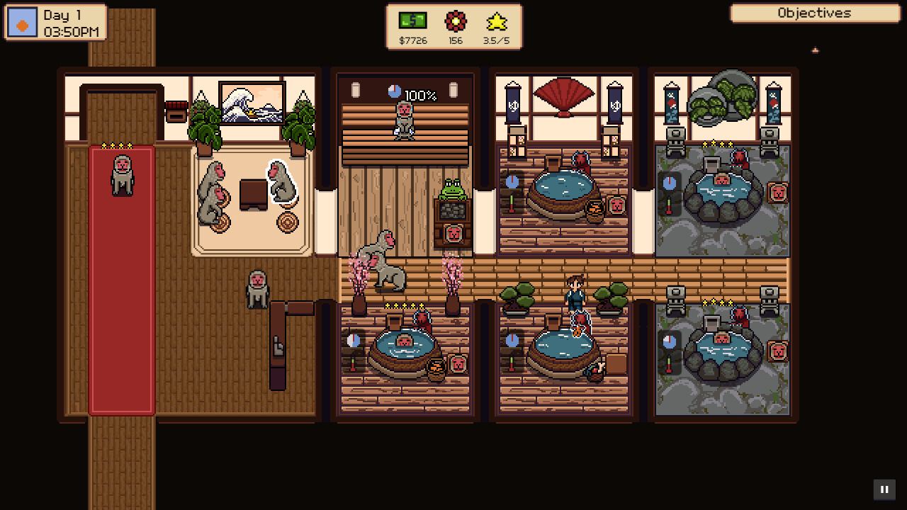 Ваша цель — возродить к жизни заброшенную баню, начав практически с нуля. Инвестируйте в функциональные улучшения для купелей: магические системы очистки воды или специальную подготовку для драконов-истопников. Широкие возможности кастомизации позволяют украсить интерьер множеством предметов: от резиновых уточек и цветущей сакуры до тематических баннеров и даже витрины с катаной. Основной сюжет игры Bathhouse Creatures рассчитан примерно на 2-3 часа прохождения.