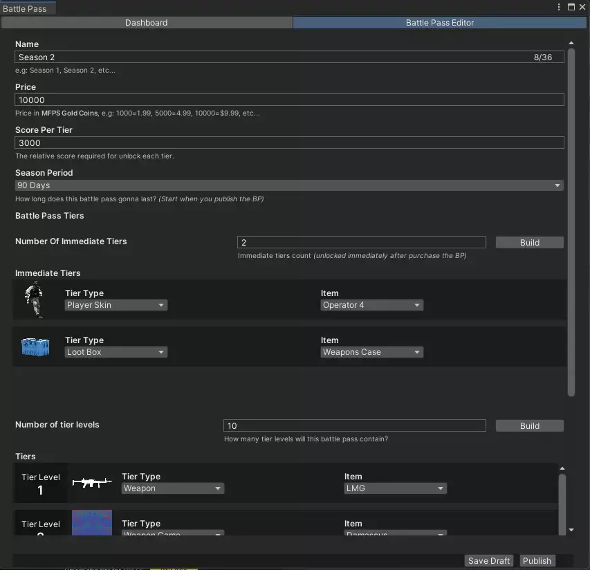 Это дополнение интегрирует систему battle pass в MFPS, позволяя игрокам приобретать сезонные абонементы и разблокировать игровые предметы, играя в игру.