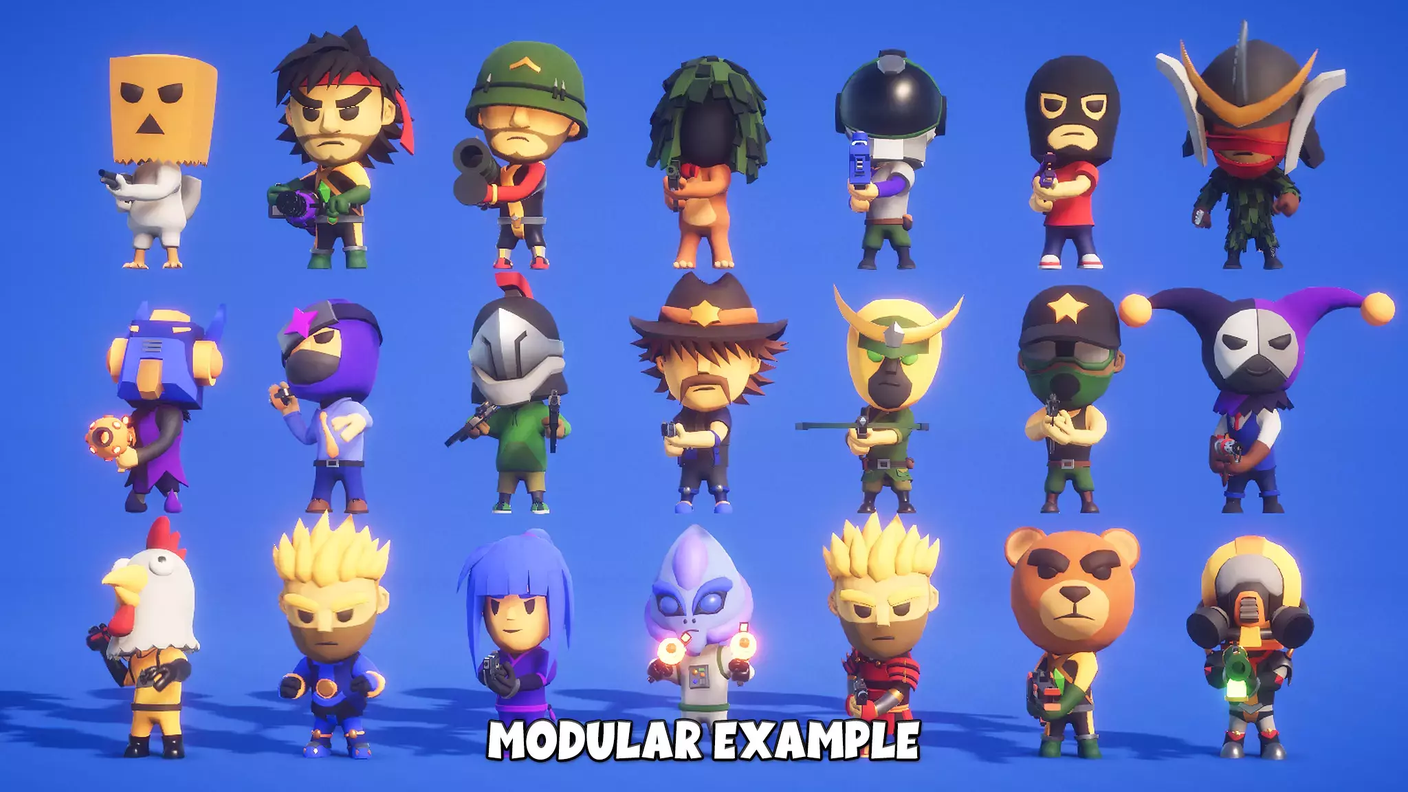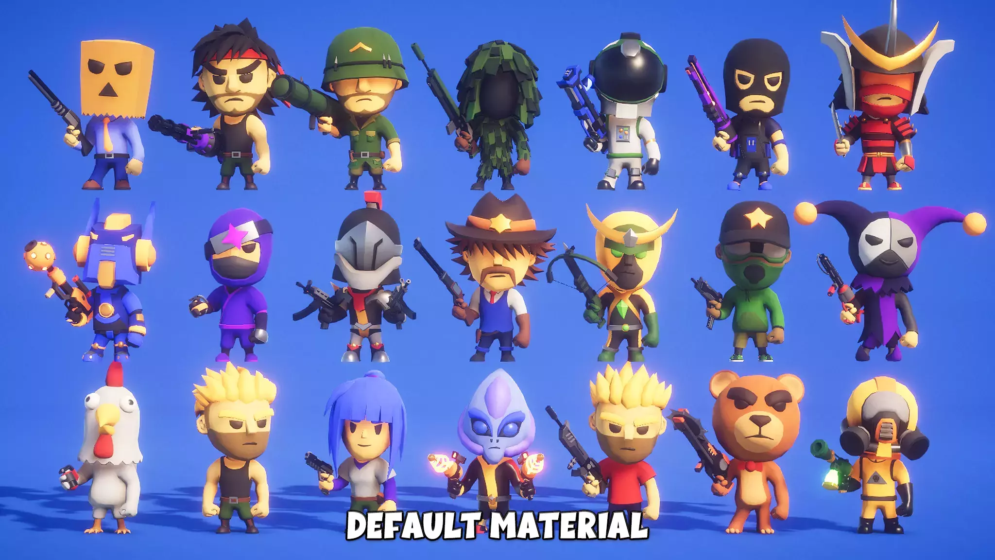 - Если вы создаете игру Battle Royale Survival, этот пак может стать ответом на вашу молитву. С этим модульным паком 20 голов / 20 тел / 20 оружия вы можете легко создать любой вид бесплатной игры в жанре выживания.