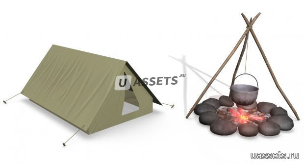 3D модельки костра и палатки. Данные модели можно использовать в коммерции абсолютно бесплатно!