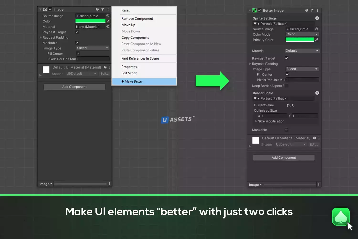 С помощью рабочего процесса Make Better вы можете конвертировать компоненты UGUI в их "Лучшие" версии двумя щелчками мыши. Ссылки на эти компоненты также преобразуются. Так что это просто работает без забот.