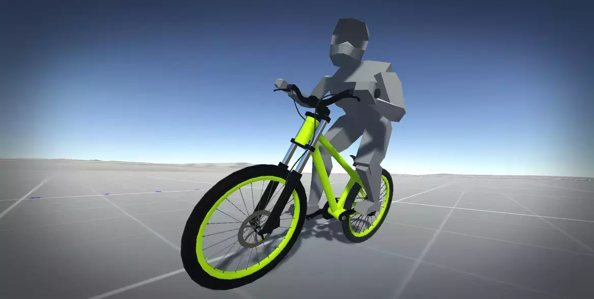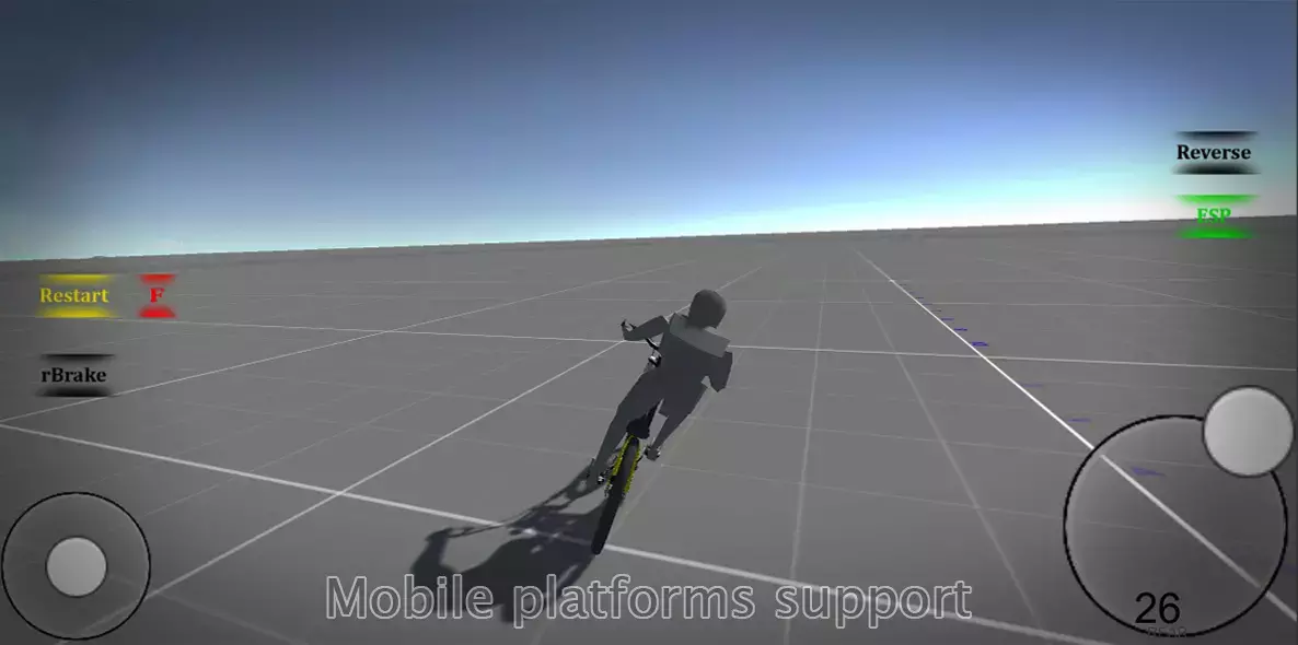 Это реалистичная физика двух колес для любого вида велосипедов. Включены трюки, два независимых тормоза, реальная работа подвески, IK голова «взгляд», задний ход и перемещение массы пилота.