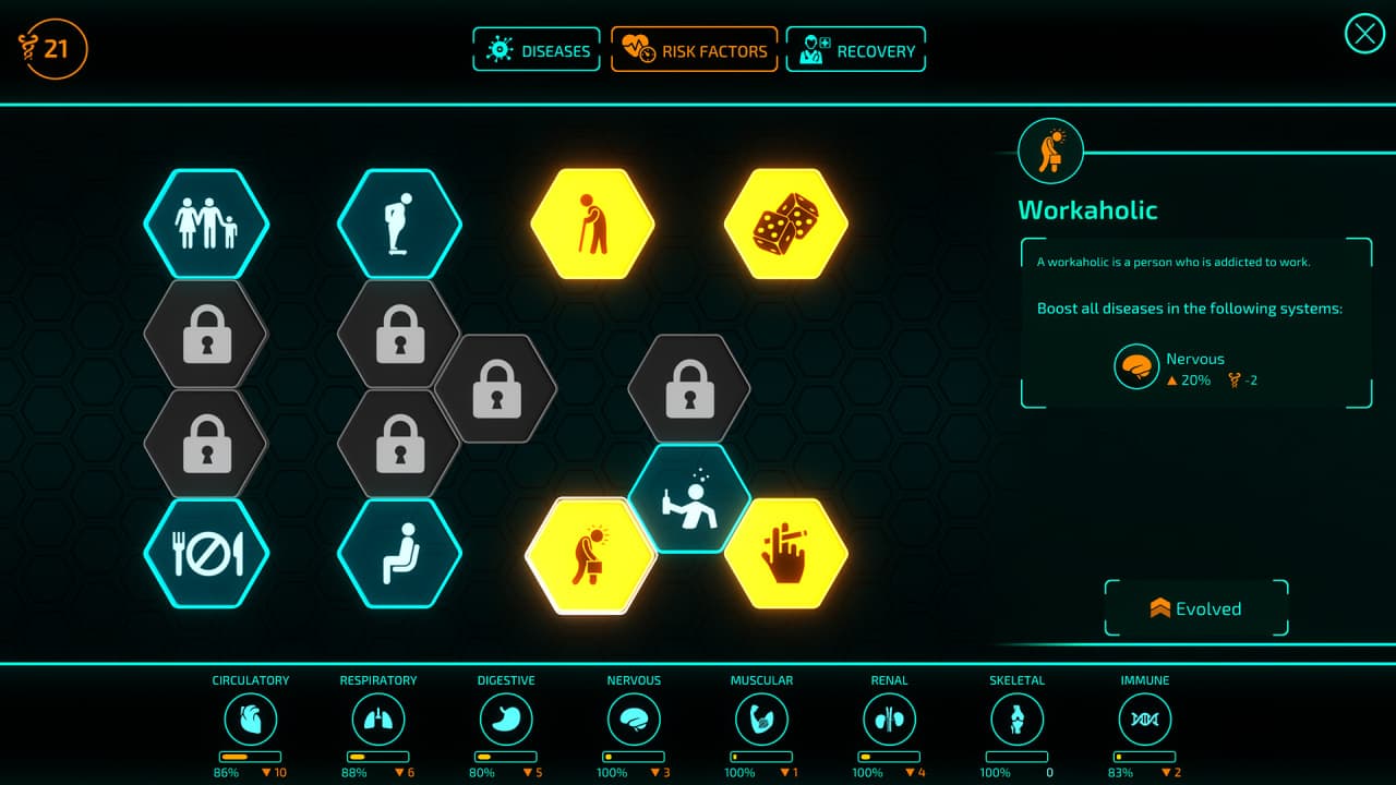 В сюжетном режиме вы станете героем-медиком, чья задача – диагностировать недуги и находить лекарства, чтобы исцелять людей. С каждым новым случаем вызовы будут расти. Либо исследуйте тёмную сторону науки, создавая по-настоящему ужасающие патогены. Вам предстоит обходить защитные системы организма, бороться с вакцинами и разрабатывать всё более совершенные и смертельные штаммы.