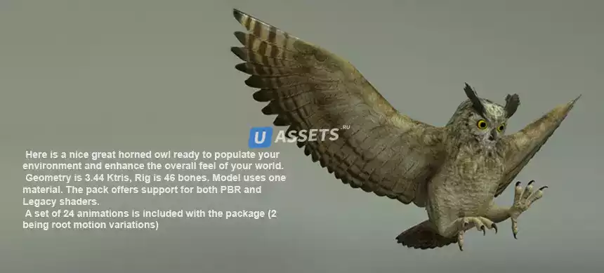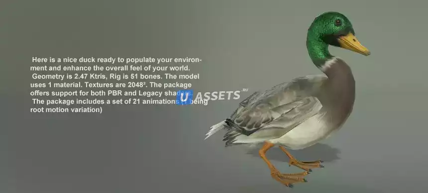 Пакет предлагает поддержку как PBR, так и устаревших шейдеров, а также анимации движения на месте и в корне. Все установки настроены на mecanim generic.