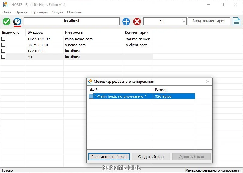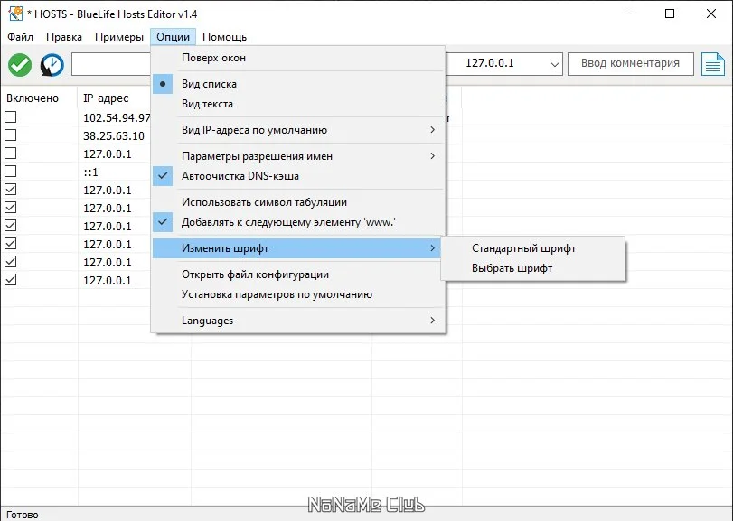 Основные возможности BlueLifeHosts editor 1.4 Portable включают в себя не только базовое редактирование записей, но и ряд полезных функций для администрирования. С помощью программы можно легко добавлять новые записи, блокировать или разблокировать сайты, а также изменять IP-адреса, что особенно актуально при миграции ресурсов. Дополнительно утилита предоставляет инструменты для управления DNS-службой (запуск, перезагрузка) и создания резервных копий редактируемых файлов hosts, что является важной мерой предосторожности.