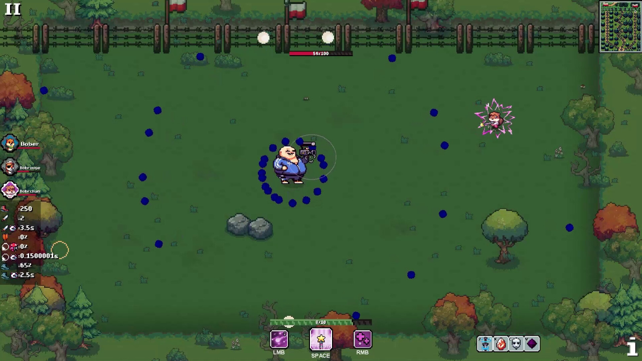 Геймплей BOBR KURWA предполагает одновременное управление всеми 3 главными героями. Этот проект бросает вызов умениям геймера, требуя быстрой реакции и тактического мышления. Каждый член отряда обладает уникальным набором заклинаний, формируя особый арсенал для группы. Продвигаясь по локациям, можно улучшать эти способности для повышения их эффективности. Сражения заставляют проводить команду сквозь толпы противников, блокирующих путь к свободе, а процедурная генерация делает каждое прохождение уникальным. Настройка оружия дополнительно расширяет наступательный потенциал.