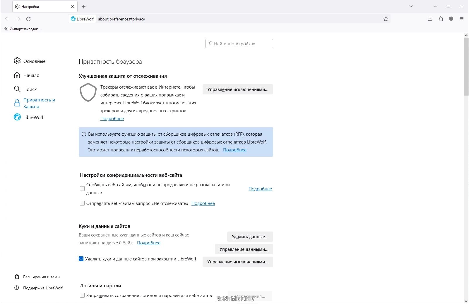 Браузер без телеметрии LibreWolf 120.0-1 + Portable представляет собой специализированную сборку на базе Firefox, сфокусированную на приватности и безопасности пользователя. В то время как Firefox предлагает широкие возможности настройки, LibreWolf по умолчанию настроен на максимальную защиту данных, устраняя многие функции, связанные со сбором информации.