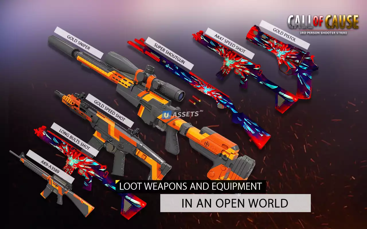 ► 10 единиц оружия (лазерная пушка, USP-45, DEAGLE, MAC-10, MP5, AK47, M4A1, SG-552, 1014, SCOUT, SG-550,)
