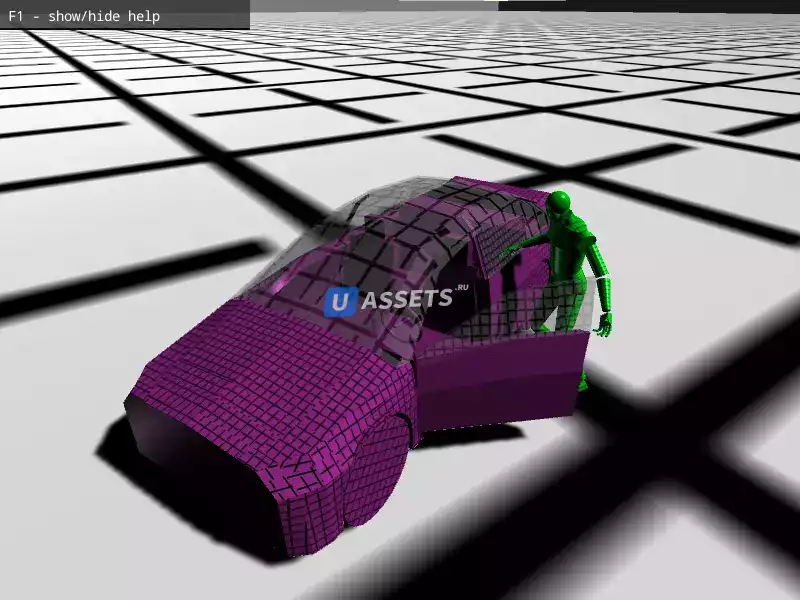 - простая модель автомобиля с салоном и дверьми, доступными для открывания;