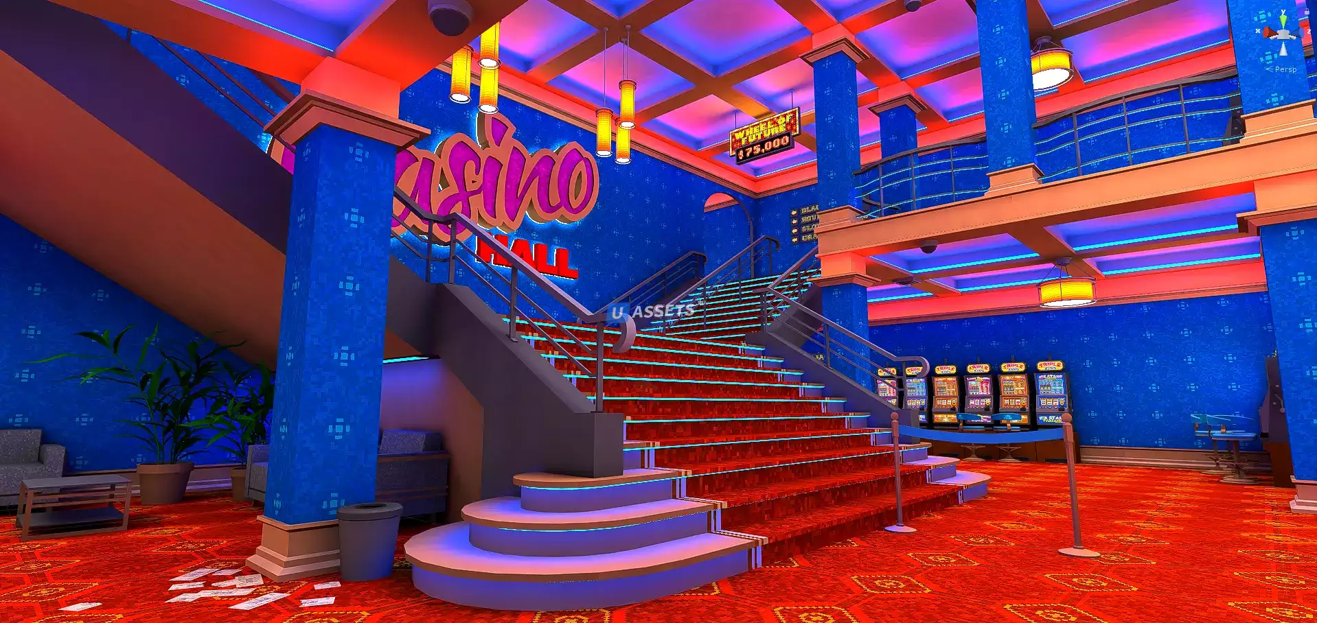 Интерьер казино - это высоко оптимизированный ресурс для любых VR, AR проектов, игр, мобильных игр, презентаций, анимации и многого другого.