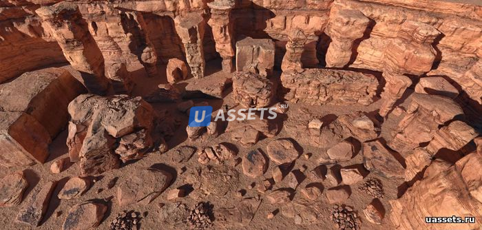 Все префабы используют текстуры 4K (которые все равно выглядят хорошо, если вы решите снизить настройки импорта), по крайней мере 4 качественных LOD и быстрые выпуклые коллайдеры. Работа над этой коллекцией заняла один год, и она была отсканирована в ред-роке в центральной части штата Юта, США. Вся ретопология и UVS были сделаны вручную, чтобы обеспечить высочайшую детализацию и качество каждого полигона.