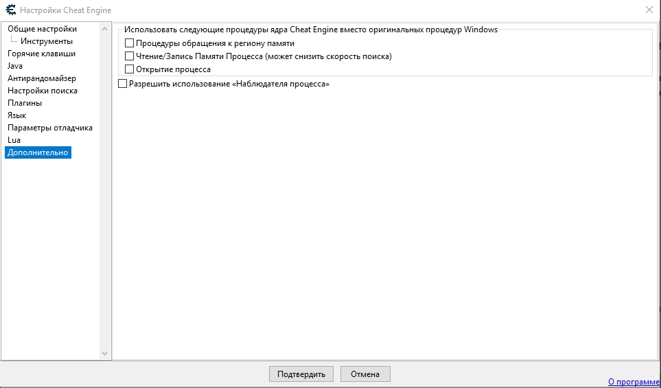 Интерфейс программы достаточно прост, и русифицирован, инструкции как пользоваться вы сможете найти на официальном сайте, или других ресурсах, их достаточно много в том числе и видео на ютубе, где пошагово рассказывают как пользоваться "чит енджином". Распаковать содержимое архива в любую удобную папку. Программа полностью русифицирована, русский язык выбран в "Настройках" программы.