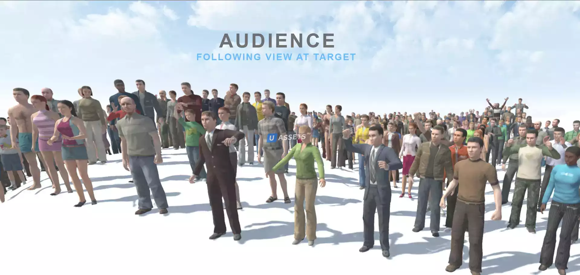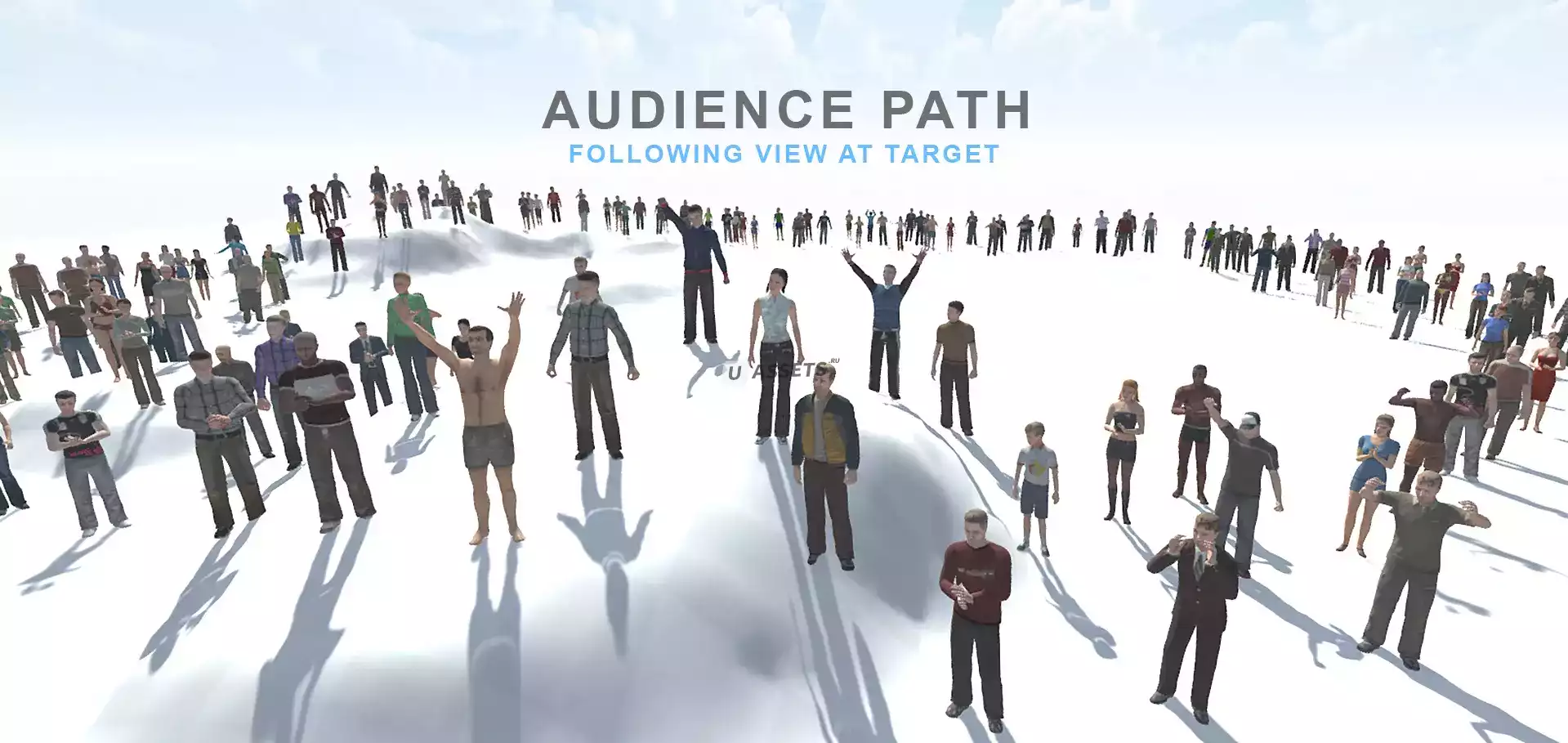 "Путь аудитории" поможет вам, если вам нужны зрители на обочине дороги, они наблюдают за движущимися объектами. Например, зрителям автомобильных гонок Этот актив мог бы пригодиться в различных секторах, таких как строительные компании, которые делают 3D-презентации своих зданий и улиц, для создателей компьютерных игр и других проектов.