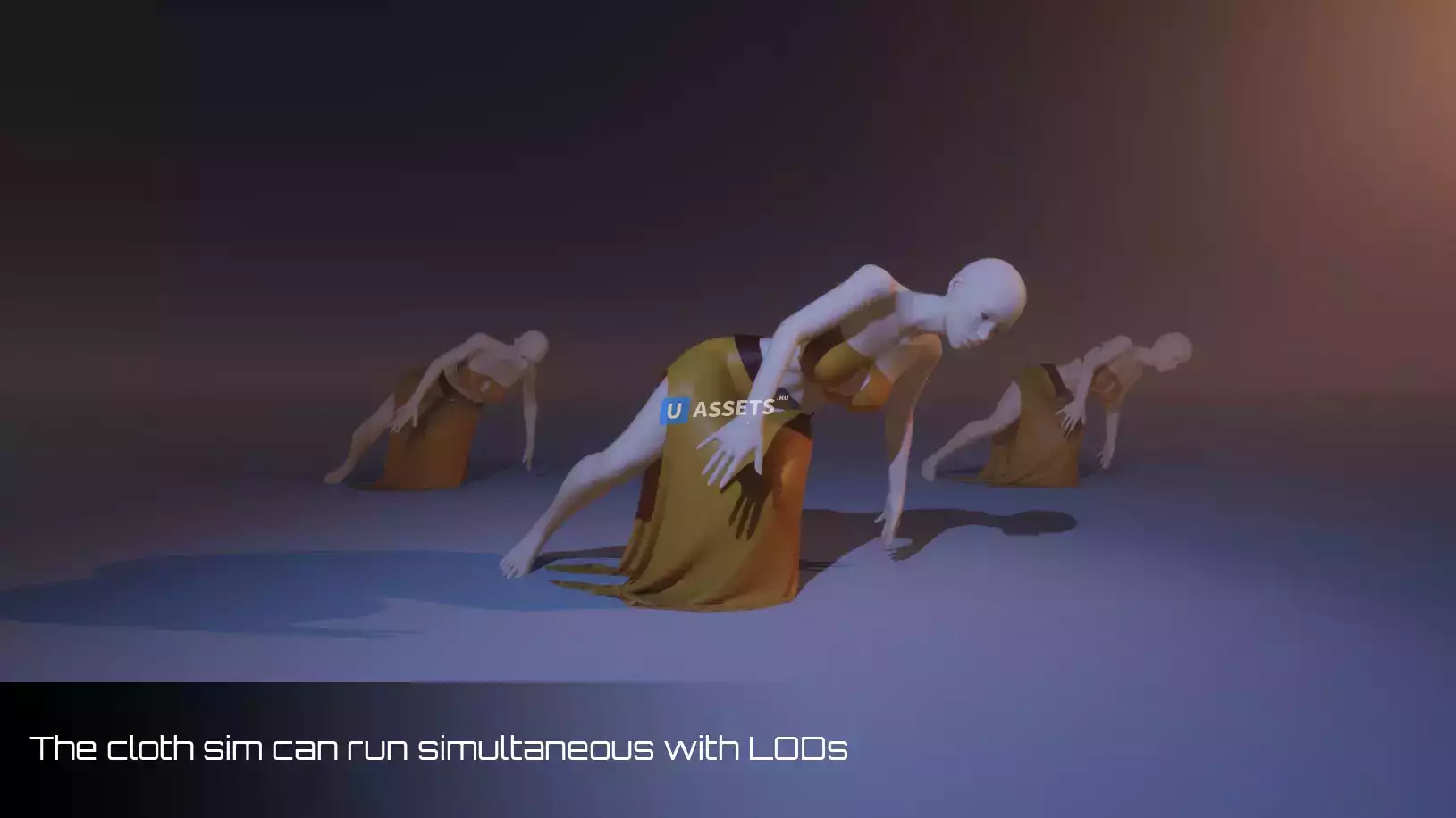 - Простая система LOD для переключения между сеткой с кожурой и имитацией ткани.