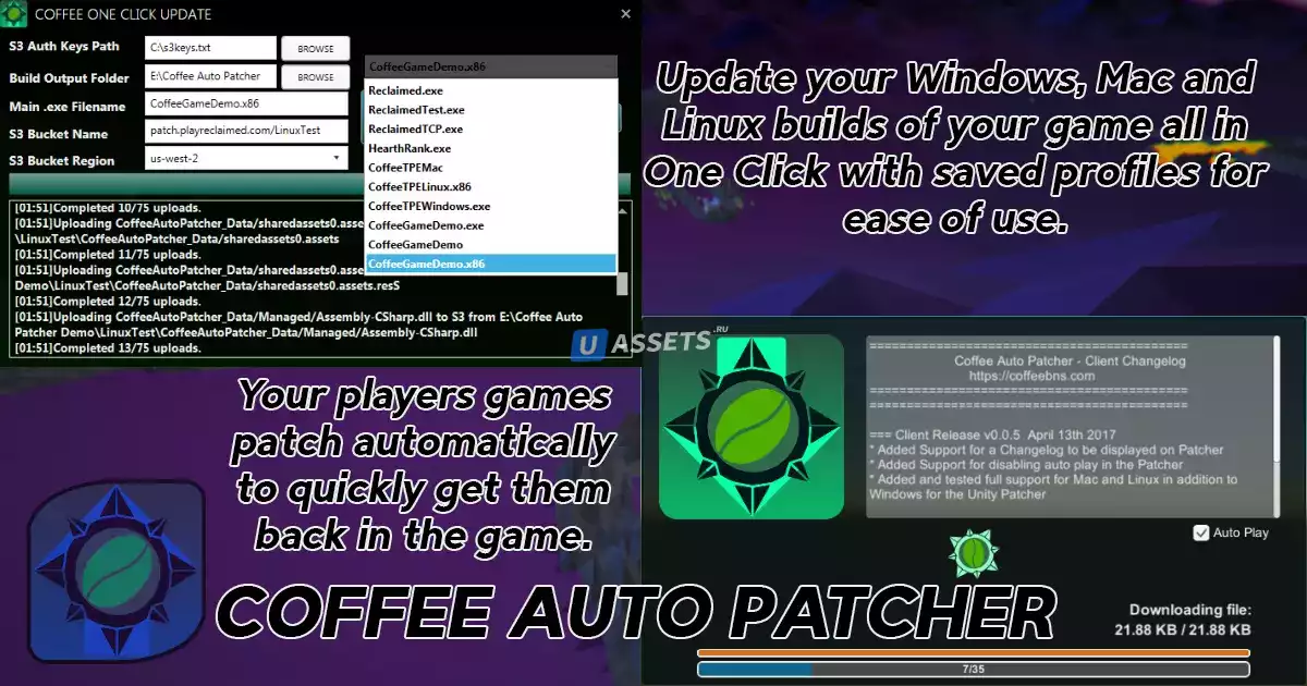 Система исправлений Coffee Auto Patcher предназначена для автоматического получения обновлений вашей игры игроками без участия игрока.