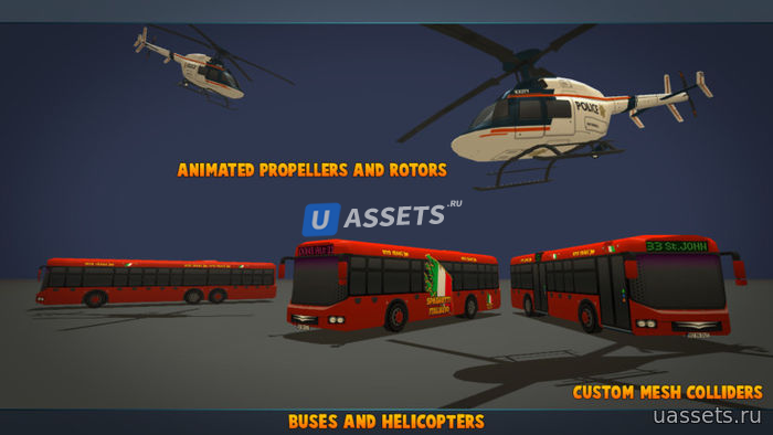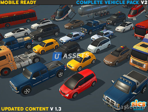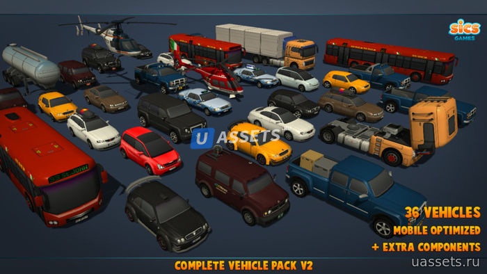 Этот пакет содержит 36 различных транспортных средств, от обычных городских автомобилей до грузовиков и вертолетов.