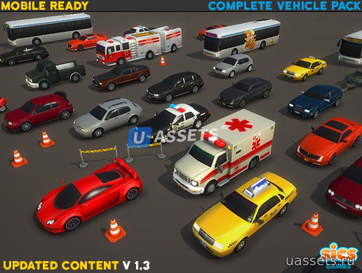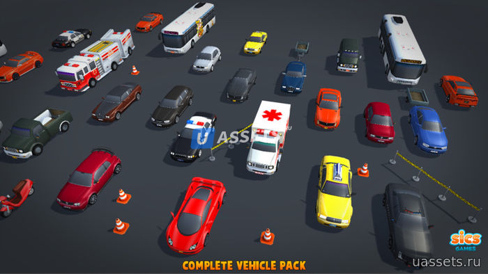 Этот пакет содержит 27 различных транспортных средств, начиная от обычных городских автомобилей, заканчивая полицейскими машинами и пожарными машинами.