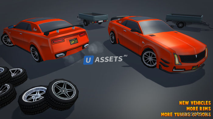 Пакет содержит 74 сборных модуля, каждый автомобиль имеет мобильную версию, а для тех, кто хочет настроить свои автомобили, в комплект добавляются отдельные колеса.