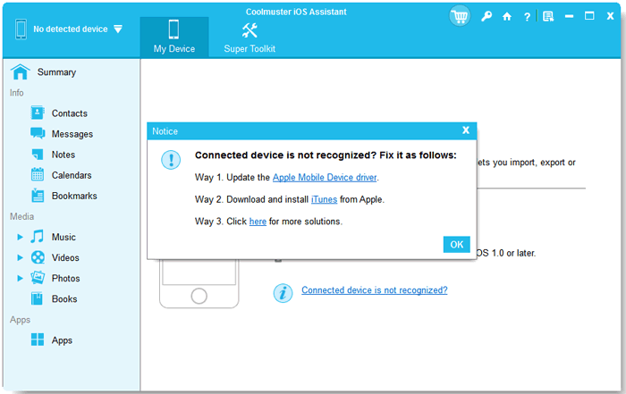 Запустите Coolmuster iOS Assistant и дайте программе доступ к вашему устройству.